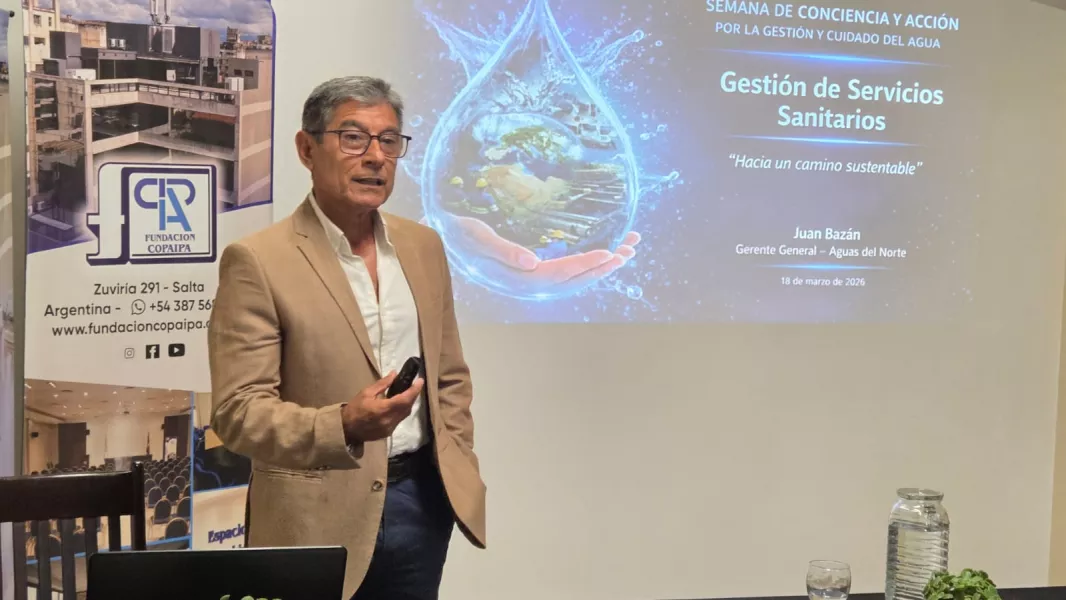 Jefatura de Gabinete de Ministros Noticias de Salta Aguas del Norte 19/03/2026 12:42En el marco de la semana de acciones por el Día Mundial del Agua que se celebra este domingo 22 de marzo, el gerente general de la empresa prestadora del servicio, Juan Bazán, disertó en el evento central de la Semana de Conciencia y Acción por la Gestión y Cuidado del Agua 2026, organizado por el Copaipa.