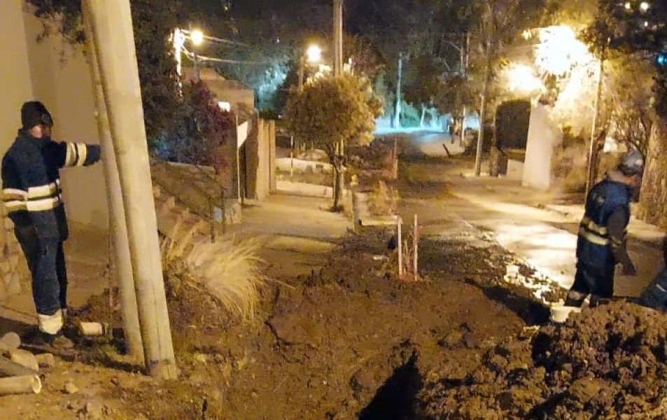 Durante la madrugada de hoy, y luego de recibir un alerta por la rotura de las cañerías en uso durante los trabajos de recambio y colocación de las nuevas redes, los trabajadores de la empresa encontraron una obstrucción en calle Cumbre, esquina 13 de Julio la cual fue desobstruida.