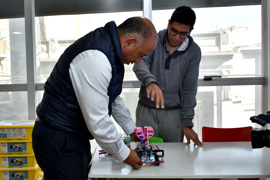 El ministro de Economía y Servicios Públicos, Roberto Dib Ashur, junto a la directora de Economía del Conocimiento, Lorena Trovato, visitaron al director del Instituto de Innovación Tecnológica Aplicada (ITTA), Gustavo Viollaz; la coordinadora Pedagógica de la institución, Cecilia Budeguer y los alumnos que viajarán a la competencia mundial de Robótica que se realizará en Francia.