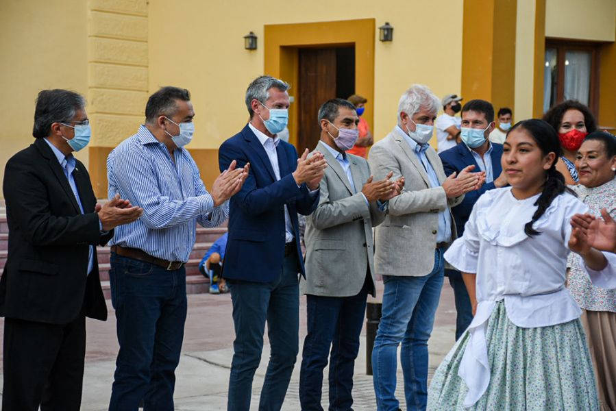 Luego del corte de cintas por parte de las autoridades, se descubrió una placa y también un mural en cerámica realizado por el artesano Santiago Haro Galli. La jornada continuó con música y baile con la participación de ballets locales que aportaron calor a la tarde de Cafayate.