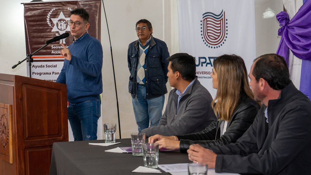 El rector de la Universidad Provincial de la Administración Tecnología y Oficios, Carlos Morello, la secretaria de las Mujeres, Género y Diversidad, Itatí Carrique, y el intendente de Chicoana, Esteban Ivetich, firmaron un convenio para que mujeres y diversidades, puedan acceder a capacitaciones dentro del ámbito de la construcción.