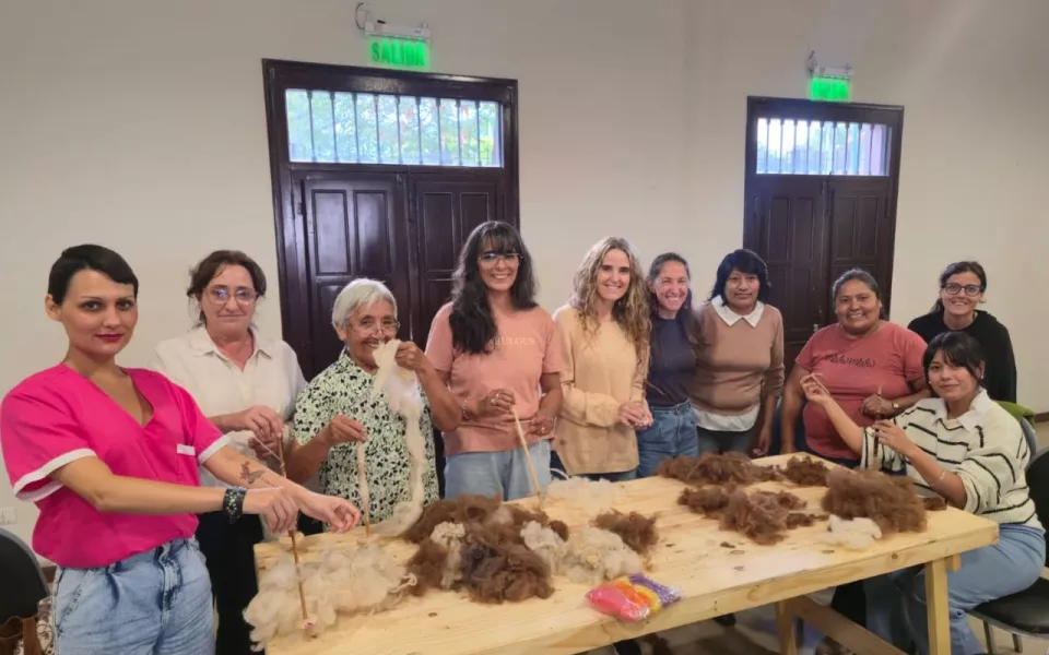 Durante la jornada, las participantes pudieron introducirse en el proceso completo del hilado artesanal, abordando contenidos como la preparación de fibras, técnicas con huso, tipos de hilado y terminaciones, además del reconocimiento de distintas fibras naturales y sus usos. La propuesta incluyó instancias de explicación teórica, demostraciones en vivo y trabajo guiado.