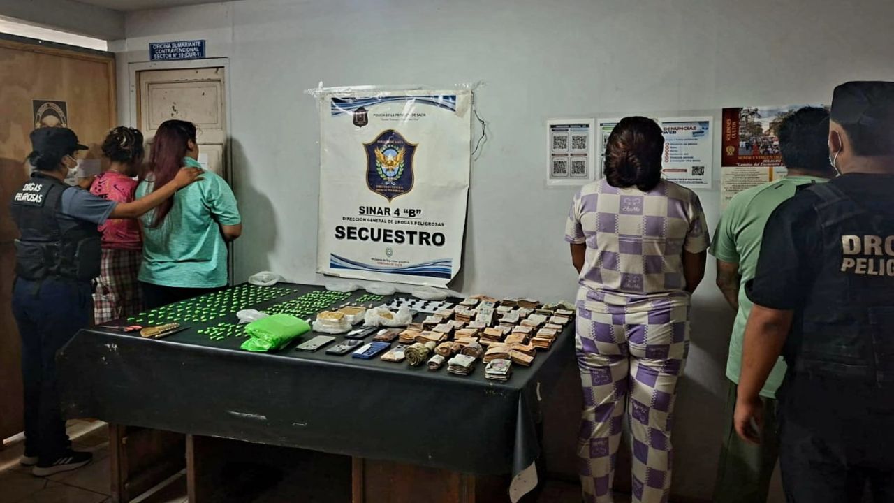 Ministerio de Seguridad Noticias de Salta Seguridad 06/02/2026 15:26La Policía de Salta puso a disposición de la Justicia a cuatro personas por comercialización de droga. Se incautaron más de 8400 dosis de cocaína. Intervino la Unidad Fiscal contra la Narcocriminalidad.