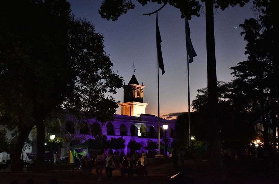 Con la puesta del sol, el Gobierno de Salta, a través de la coordinación de la Secretaría de las Mujeres, Géneros y Diversidad, iluminó distintos espacios y fachadas para conmemorar el Día Internacional de la Eliminación de la Violencia contra las Mujeres.