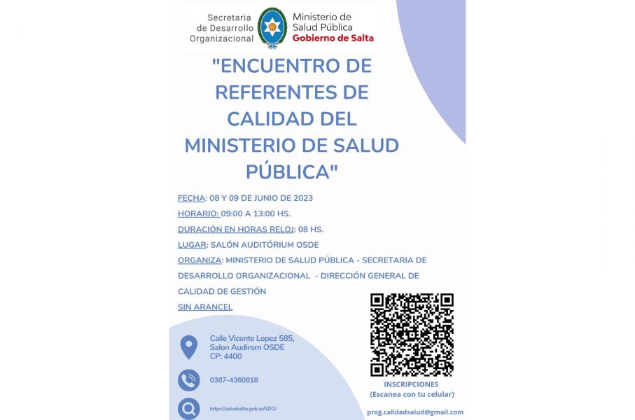 El encuentro de Referentes de Calidad del Ministerio de Salud Pública tendrá lugar hoy 8 y mañana viernes 9 de junio del que participarán todas las áreas operativas de la Provincia. El objetivo es acordar la implementación de planes vigentes y la extensión de los mismos hacia todo el territorio provincial.