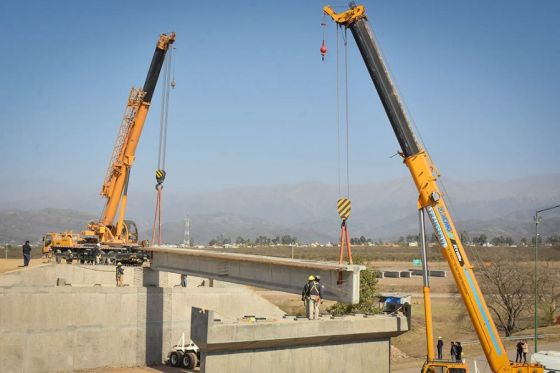 Esta mañana iniciaron las tareas para izar las vigas en los puentes que conectarán la circunvalación Oeste con la futura circunvalación Noroeste. El trabajo comprende el montaje de 12 vigas de 27,50 metros de largo y 41 toneladas de peso y otras 12 vigas de 20,80 metros y 32 toneladas.