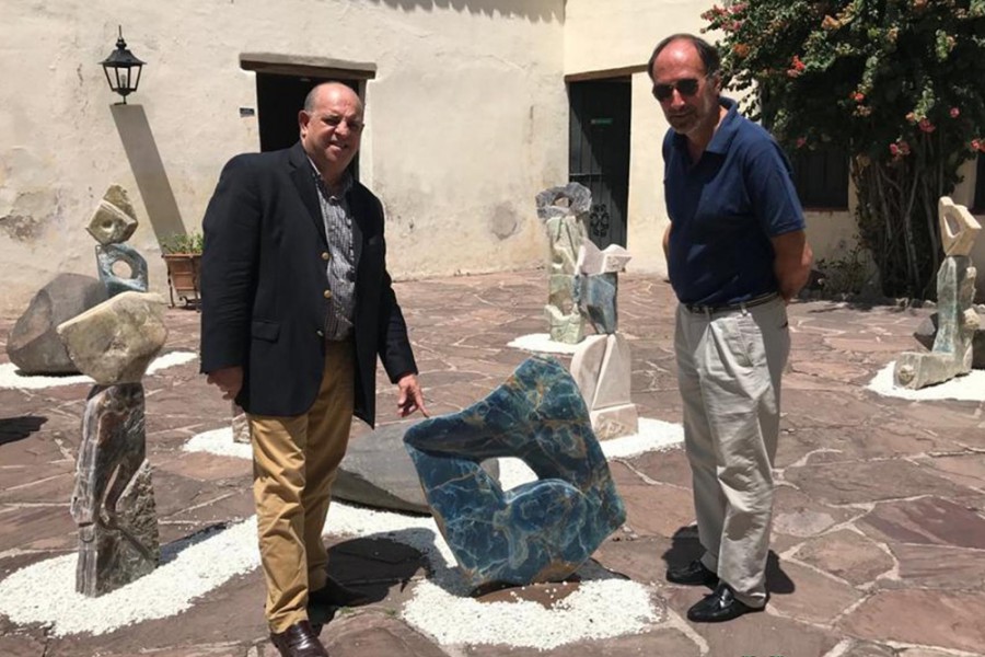 El secretario de Minería y Energía Ricardo Alonso visitó el patio del Museo Histórico del Norte, donde se luce actualmente una muestra artística única compuesta por obras esculpidas en piedras de ónix de diversos tipos, todas provenientes de la Puna, en la que se resalta el ónix azúl, único en el mundo.
