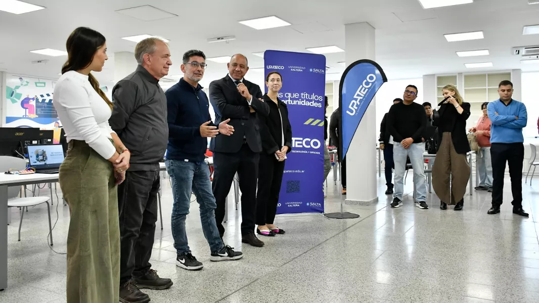 El acto contó con la presencia del ministro de Economía y Servicios Públicos, Roberto Dib Ashur; el rector de UPATecO, Carlos Morello; la subsecretaria de Economía del Conocimiento, Lorena Trovato; el senador por el departamento La Caldera, Daniel Moreno; y formadores de los distintos cursos.