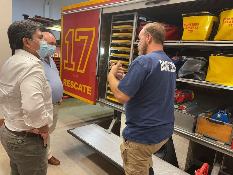 El ministro de Seguridad y Justicia Abel Cornejo junto al secretario de Seguridad Benjamín Cruz recorrieron las instalaciones del cuartel de Bomberos Voluntarios San Juan de Dios de Cafayate con el propósito de continuar fortaleciendo el trabajo articulado ante eventuales emergencias y atender las inquietudes del Organismo.