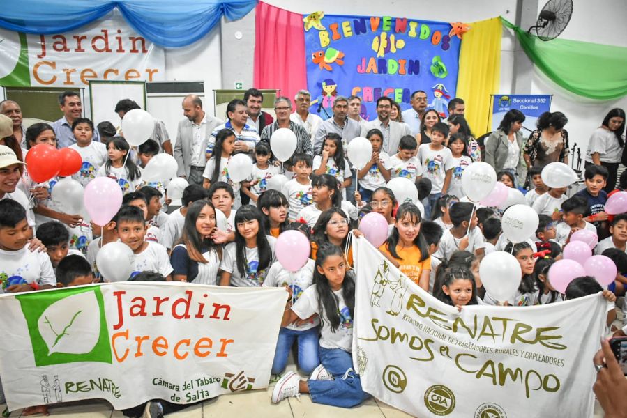 Los funcionarios, junto a Gonzalo Caro Dávalos, delegado del RENATRE Salta; Esteban Amat Lacroix, Presidente de la Cámara del Tabaco; Pablo Lacroux, gerente de Responsabilidad Social Empresaria de la Cámara del Tabaco de Salta y representantes de otras instituciones recorrieron, participaron y observaron las actividades que se realizan en los cuatro centros de Jardín Crecer, que funcionan en las localidades La Falda, Las Blancas, Las Palmas y El Huaico, Departamento Cerrillos.