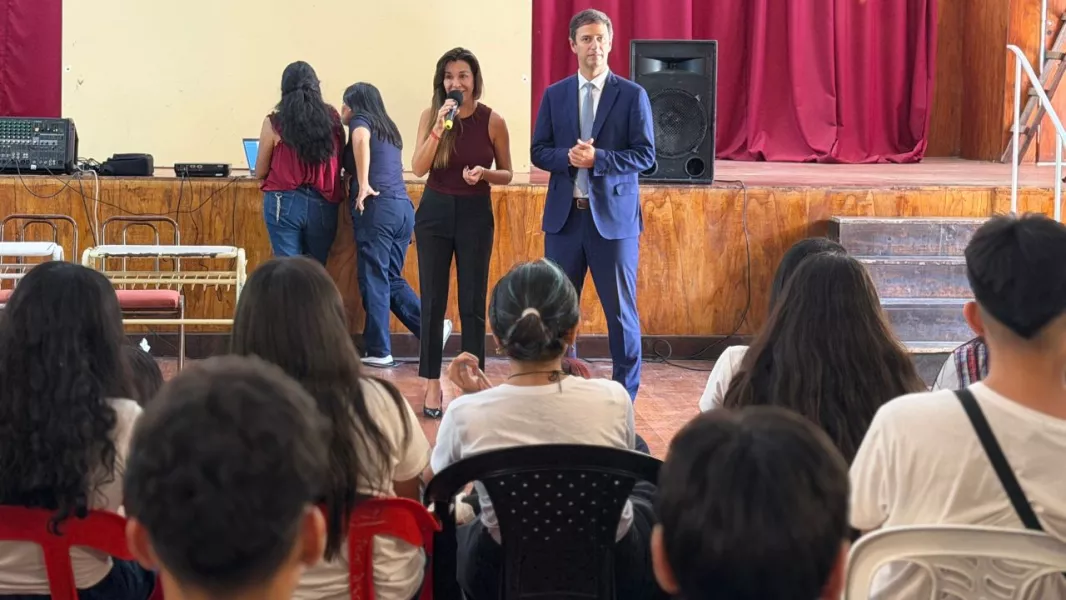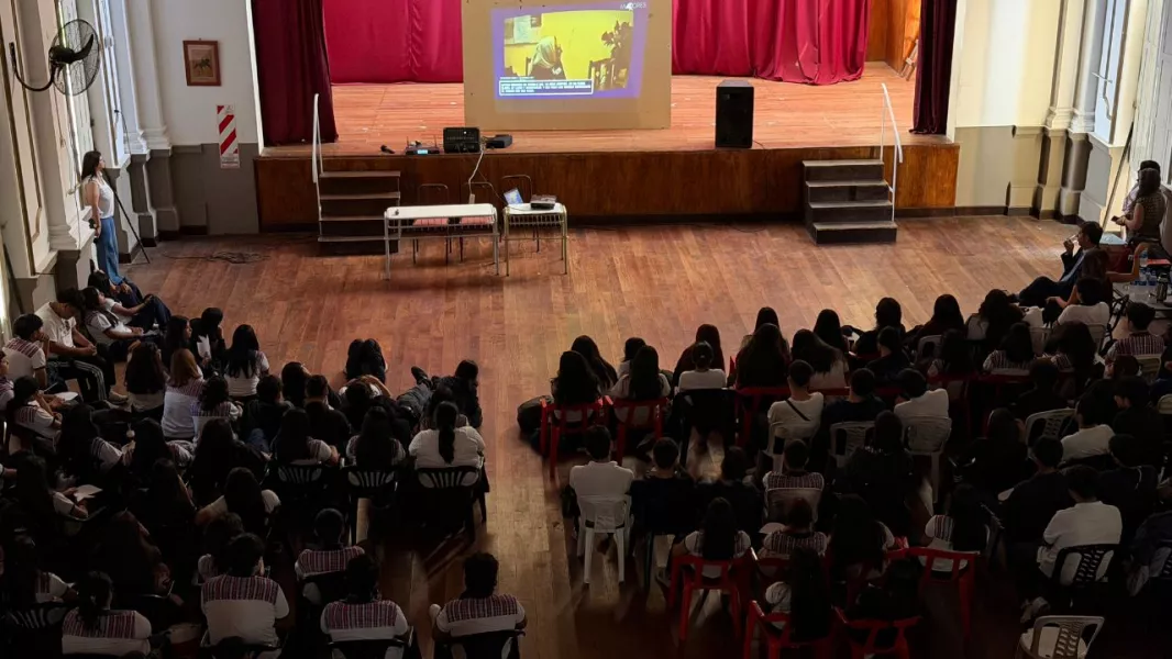 La labor de formación ciudadana continuó, en la Escuela Normal, donde estudiantes de 5to y 7mo año participaron de un encuentro de profunda sensibilidad junto al secretario de Justicia y Derechos Humanos, Javier Mónico, y la subsecretaria del área, Mariana Reyes. Durante la jornada se proyectó material audiovisual de Abuelas de Plaza de Mayo y se profundizó en el simbolismo de los pañuelos blancos como emblema mundial de paz. En este contexto, las autoridades reafirmaron que el conocimiento de nuestra identidad es la base para construir una ciudadanía comprometida, brindando herramientas que permitan a las nuevas generaciones comprender los procesos históricos del país.
