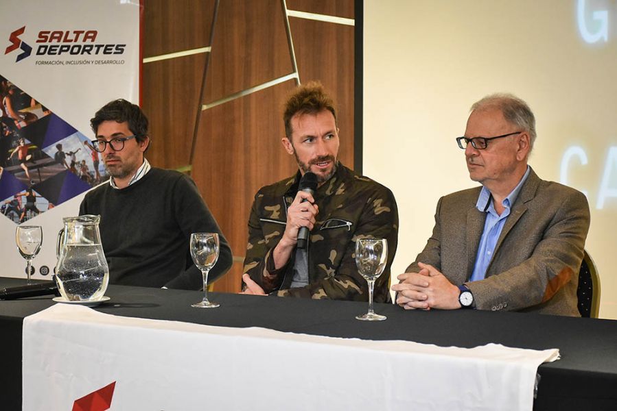 En la conferencia llevada a cabo en Uthgra estuvieron el secretario de deportes Sergio Chibán, el presidente del Foro de Intendentes Daniel Moreno, el presidente de la Federación Salteña de Natación Julio Oulier y el también nadador olímpico Eduardo Otero.
