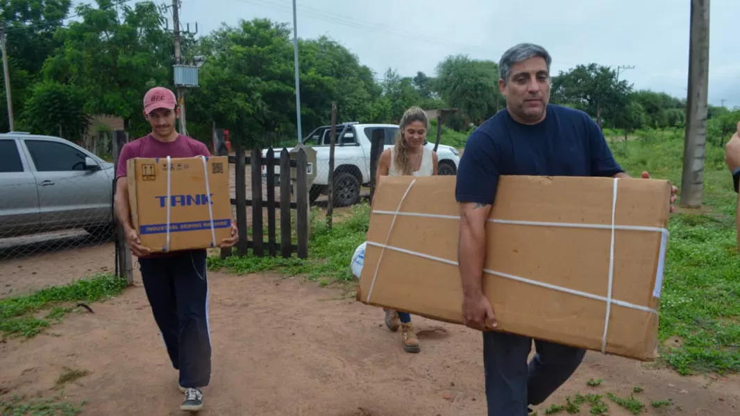 Durante la jornada también visitaron a una emprendedora local, a quien le entregaron una máquina de coser industrial destinada a fortalecer su actividad productiva. Asimismo, se realizó una intervención de asistencia integral a una familia de la zona y se entregaron alimentos a personas que se encuentran aisladas por las condiciones climáticas.