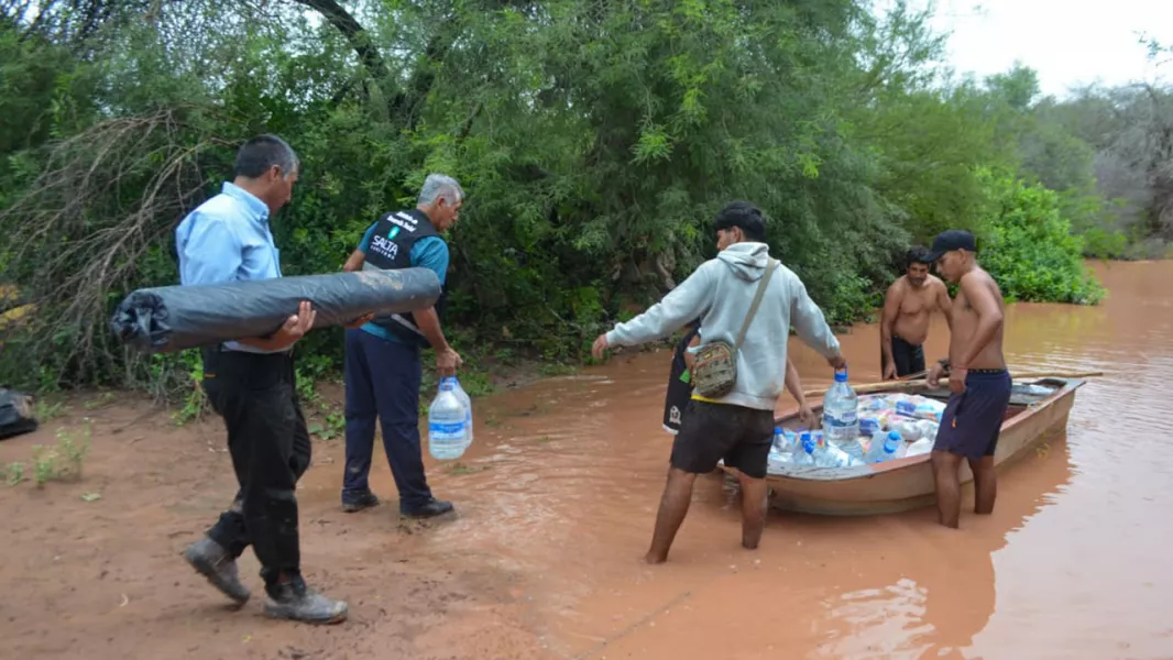 Por otra parte, las autoridades realizaron la entrega de alimentos y agua envasada a familias del paraje El Colgao, afectadas por las crecidas del río Bermejo.