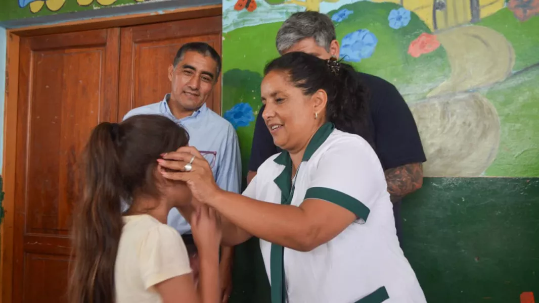 En el marco del operativo oftalmológico Ver para Ser Libres, Mimessi y Arias entregaron anteojos a 70 niños que participaron de los controles visuales. Este programa se articula entre el Gobierno nacional, provincial y municipal y está destinado especialmente a niños de 6 a 12 años.