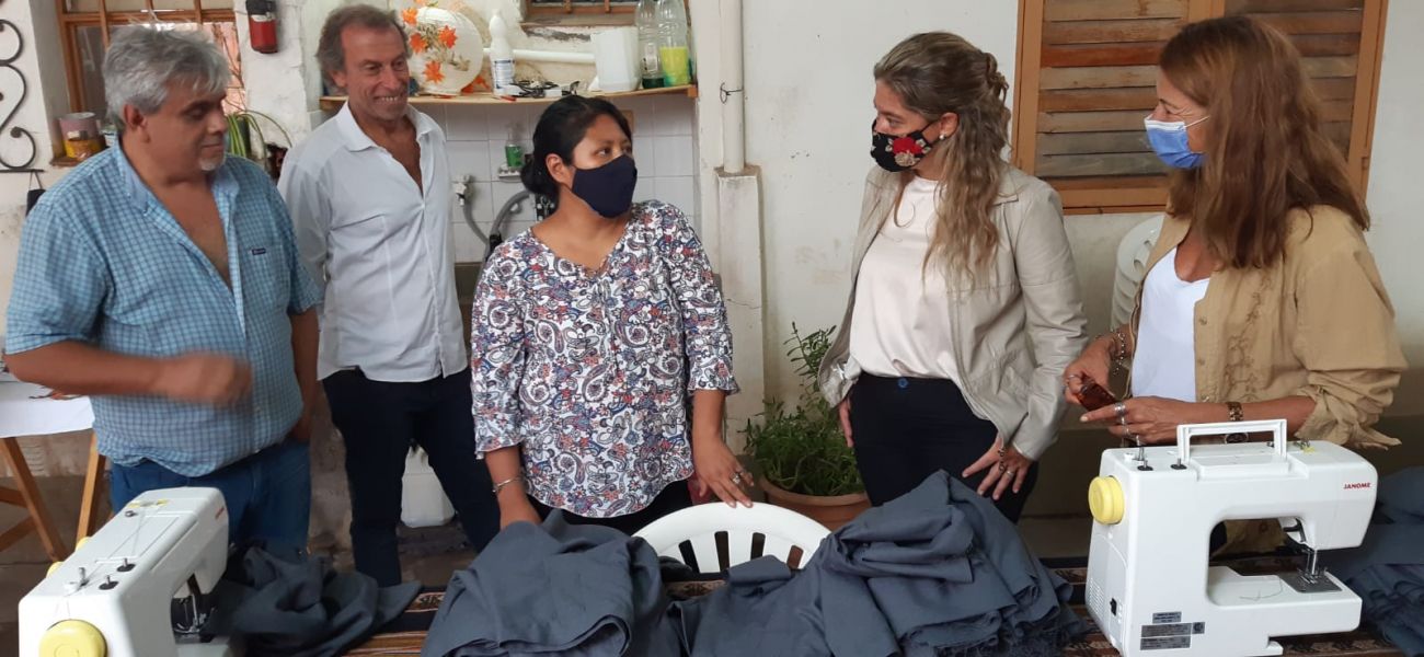 La entidad social cuenta con máquinas de coser y maquinaria especializada provista a través del programa Banco de Herramientas, con la que se hizo una primera tanda de prendas, mientras que con la entrega de insumos, se prevé realizar una nueva producción. Durante la recorrida las integrantes del emprendimiento social explicaron el procedimiento que realizan para manufacturar la ropa, y repasaron cómo fueron los inicios de la iniciativa.
