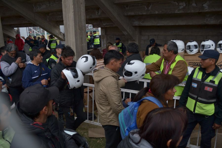 Al concluir la actividad formativa, el ministro de Seguridad, Marcelo Ramón Domínguez, el director Ejecutivo de la Agencia Nacional de Seguridad Vial, Pablo Martínez Carignano, y el presidente de la Liga Salteña de Fútbol, Sergio Chibán entregaron a los beneficiarios cascos homologados de la ANSV.