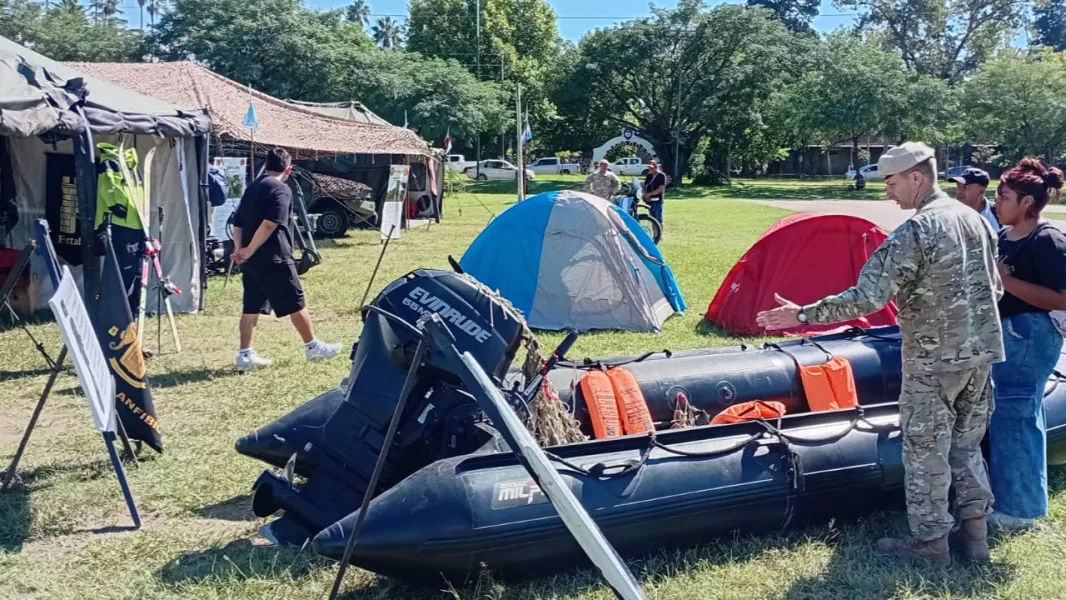 Con el marco de las maquetas, elementos de guerra tácticos y folletería los veteranos de guerra del Ejército, Armada y de la Fuerza Aérea compartieron sus experiencias y vivencias durante la gesta de Malvinas e Islas del Atlántico Sur.