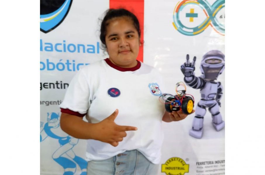 Moira Arias, estudiante de 16 años con una discapacidad intelectual, cursa actualmente el 3° año del ciclo orientado en informática del colegio Mariano Moreno N°5006 de Aguaray. Compitió a nivel provincial junto a otros alumnos de la institución en el 3° Encuentro de Robótica “SALTACOPABOT” que este año se realizó en la localidad de Tartagal. Participó en la categoría Mini Sumo RC kit provincial junto a 4 estudiantes, obteniendo el 1er puesto.