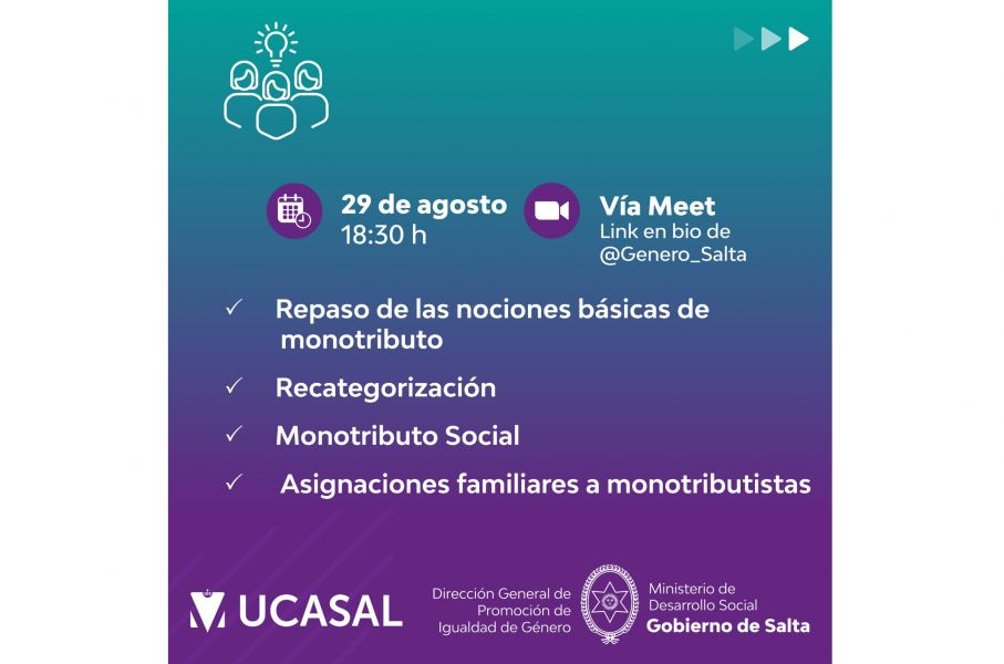 Ministerio de Desarrollo Social Noticias de Salta Desarrollo Social 23/08/2022 11:29Será este lunes 29 a partir de las 18:30 mediante Google Meet. Los interesados pueden inscribirse de forma gratuita llenando el formulario virtual.